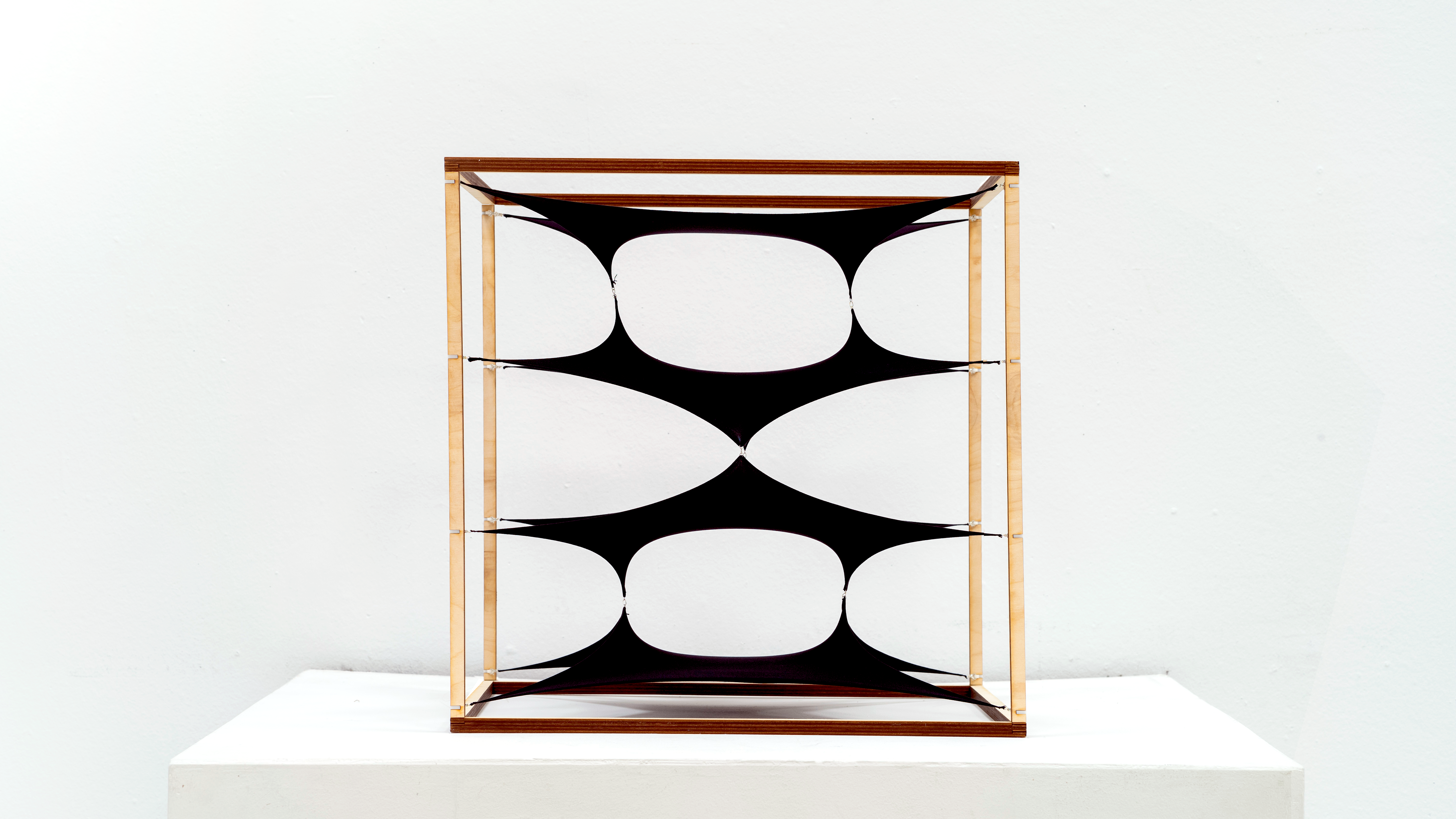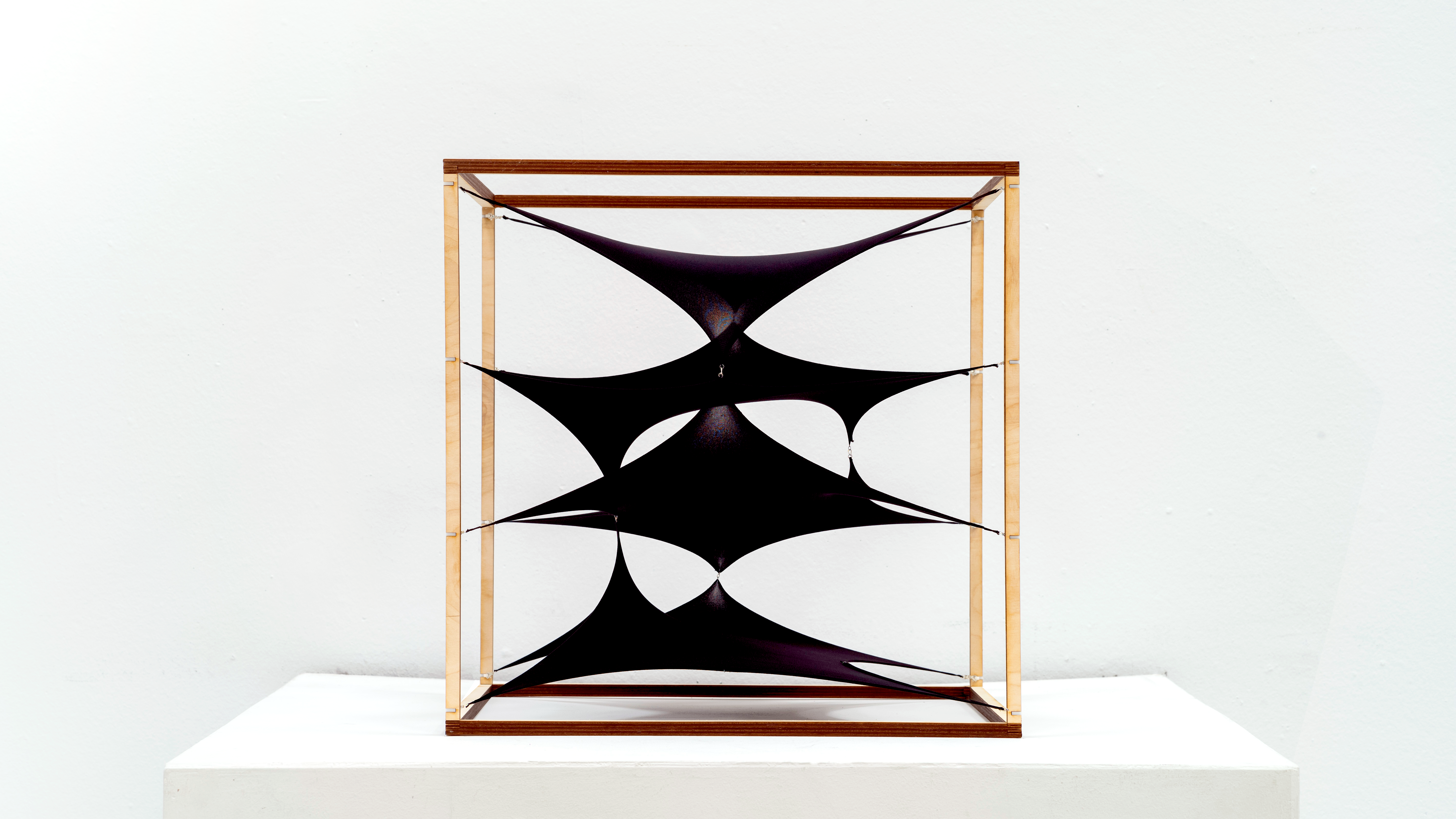 In the three prototypes, we experimented with attaching the midpoint of the four edges of the membrane in a sequential approach. The connection points generated the possibility for variations in double curvature.